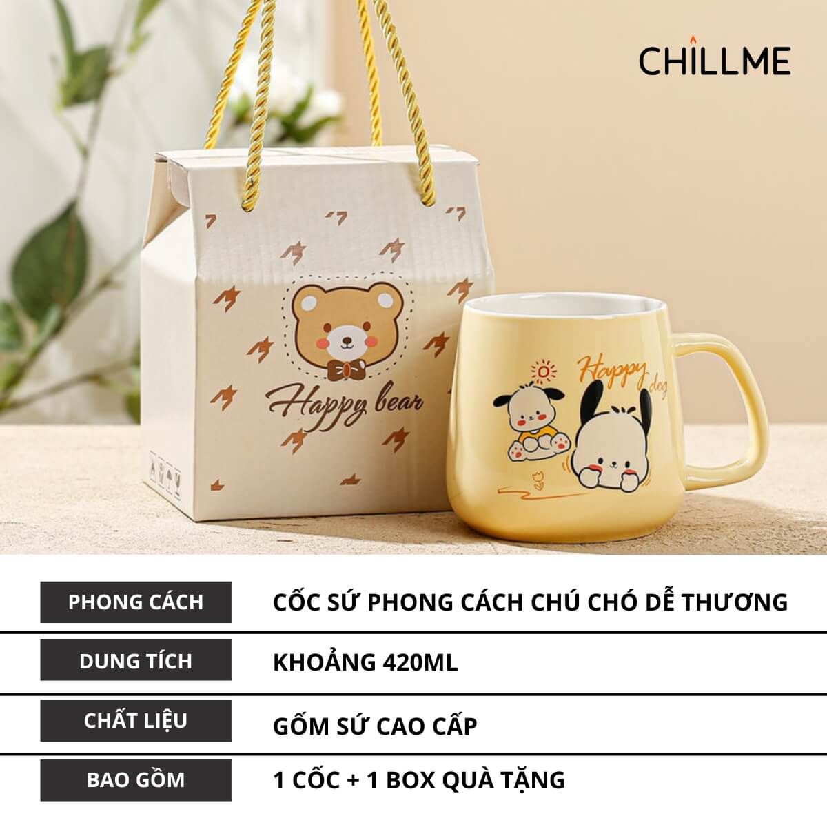 Cốc uống nước Happy dog 450ml kèm hộp quà tặng tiện lợi - LSHD01
