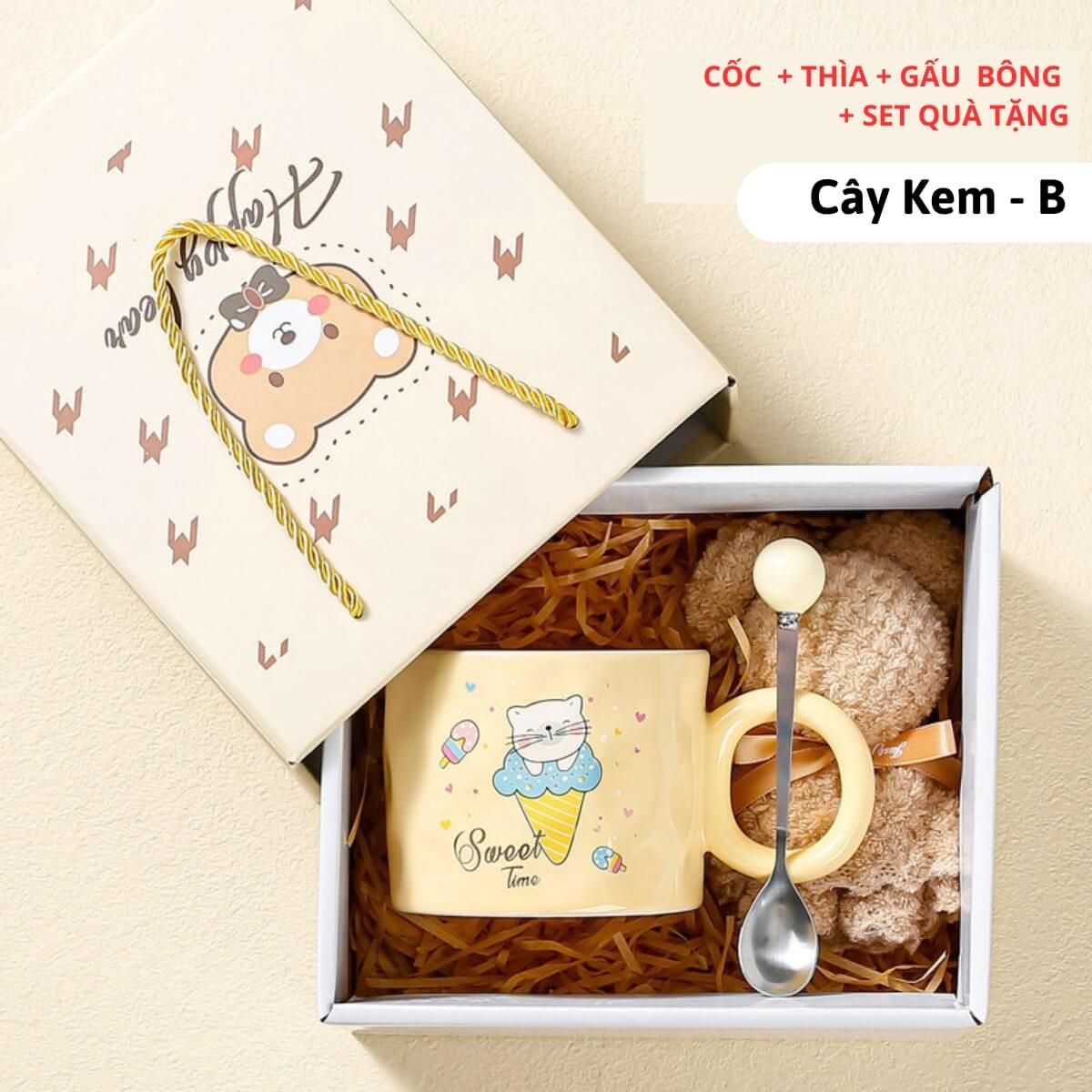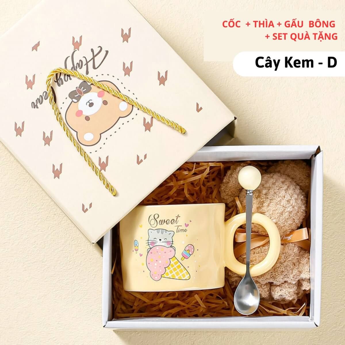 Ly sứ quà tặng Nice day 450ml kèm thìa gấu bông - LSND01