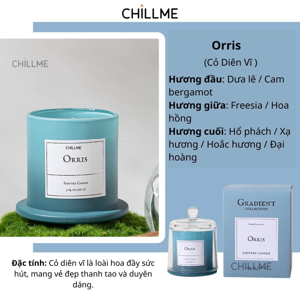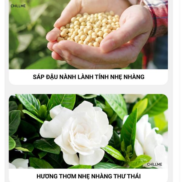 C. Nến thơm cao cấp sáp đậu nành chillme có 3 tầng hương và nhiều mùi hương cực thơm: