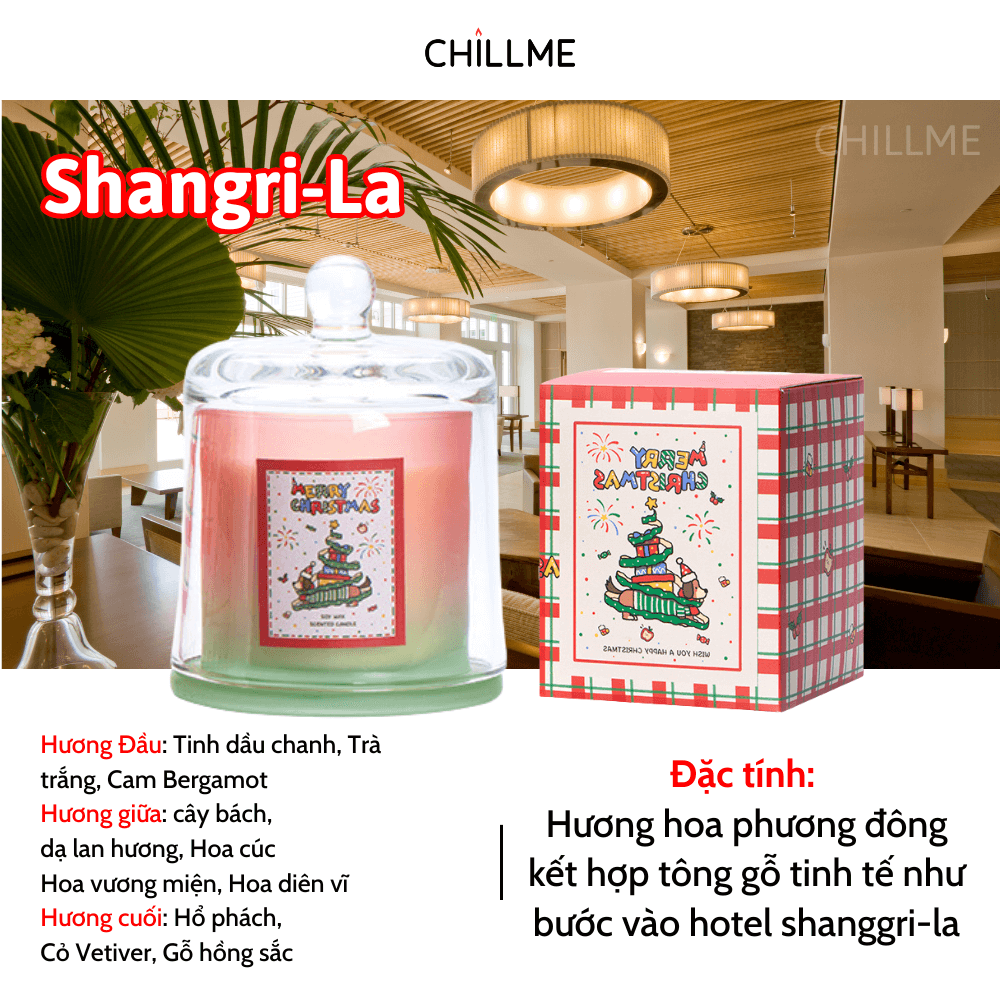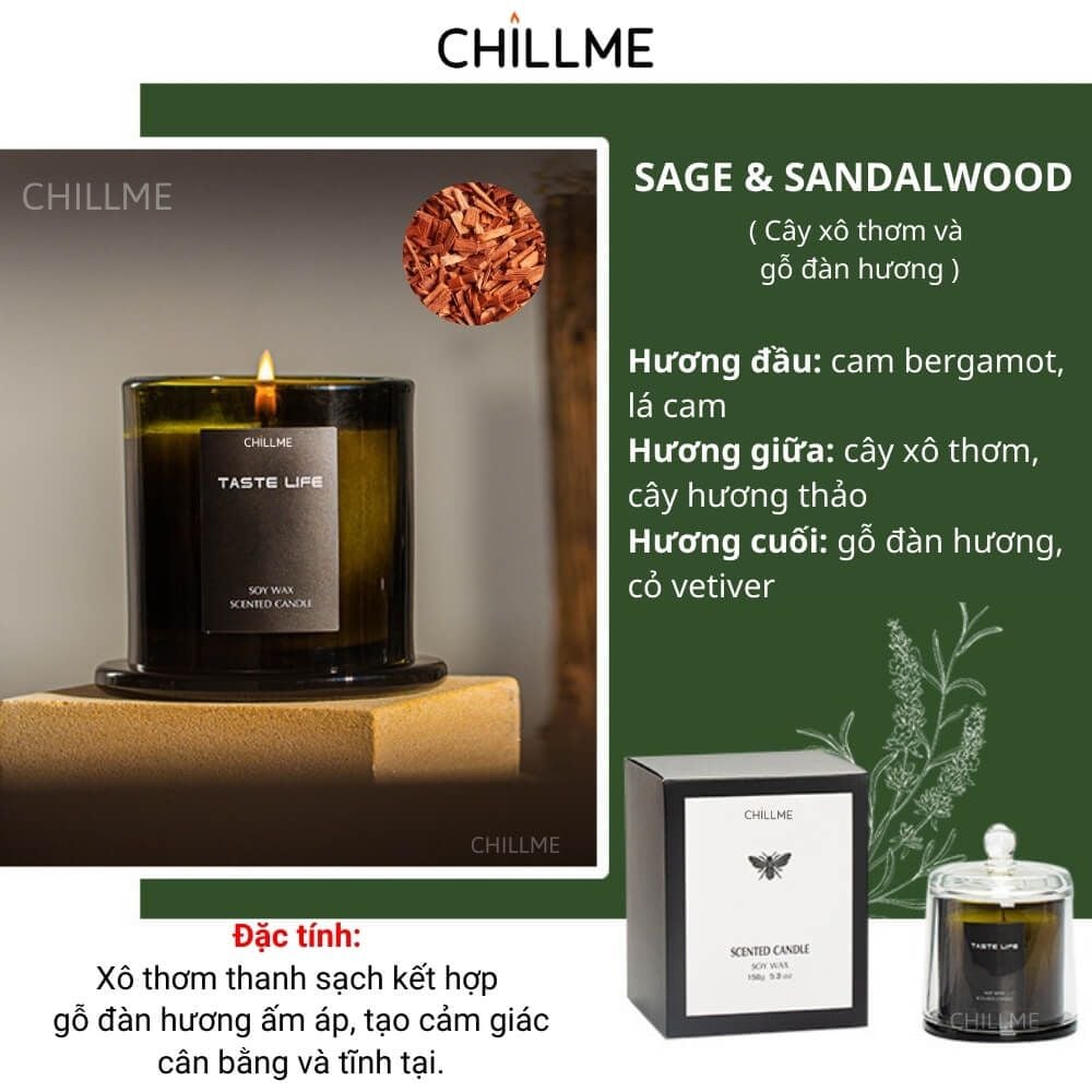 C. Nến thơm cao cấp sáp đậu nành chillme có 3 tầng hương và nhiều mùi hương cực thơm: