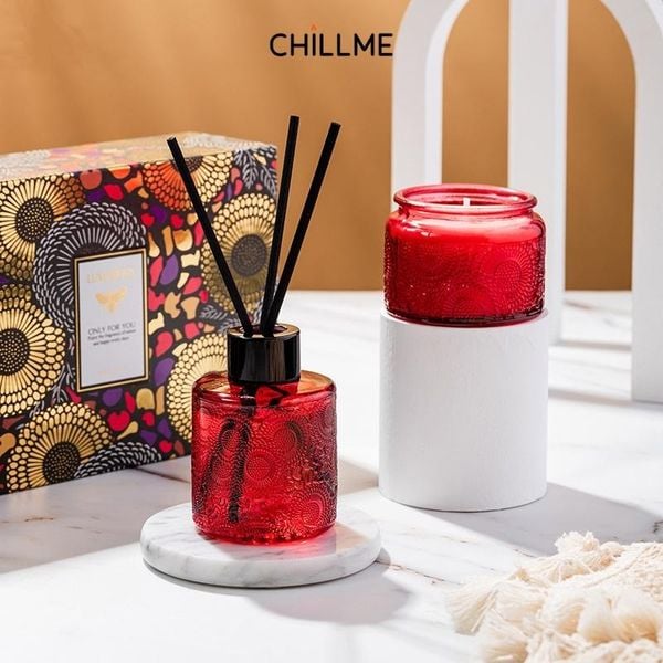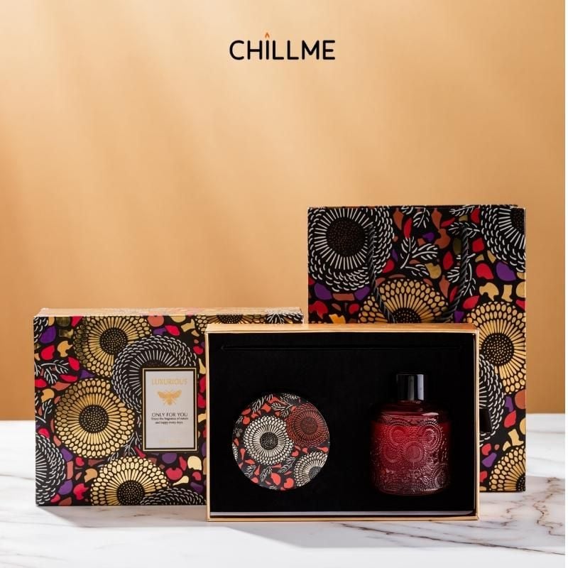 Set nến thơm tinh dầu khuếch tán chillme quà tặng cao cấp thư giãn khử mùi không khói
