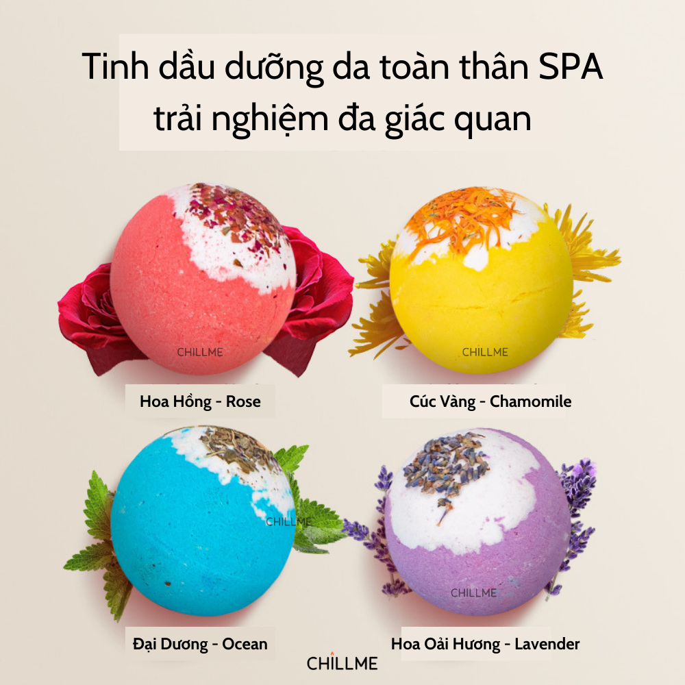 Viên sủi bồn tắm dưỡng da ( KHÔNG TẠO BỌT) thư giãn 100g Chillme hương nước hoa decor hoa khô Bath bomb